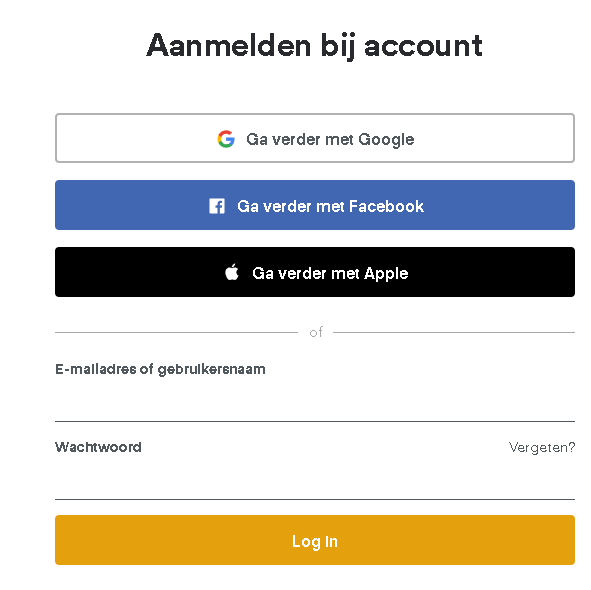 klik dan op login in de oranje balk